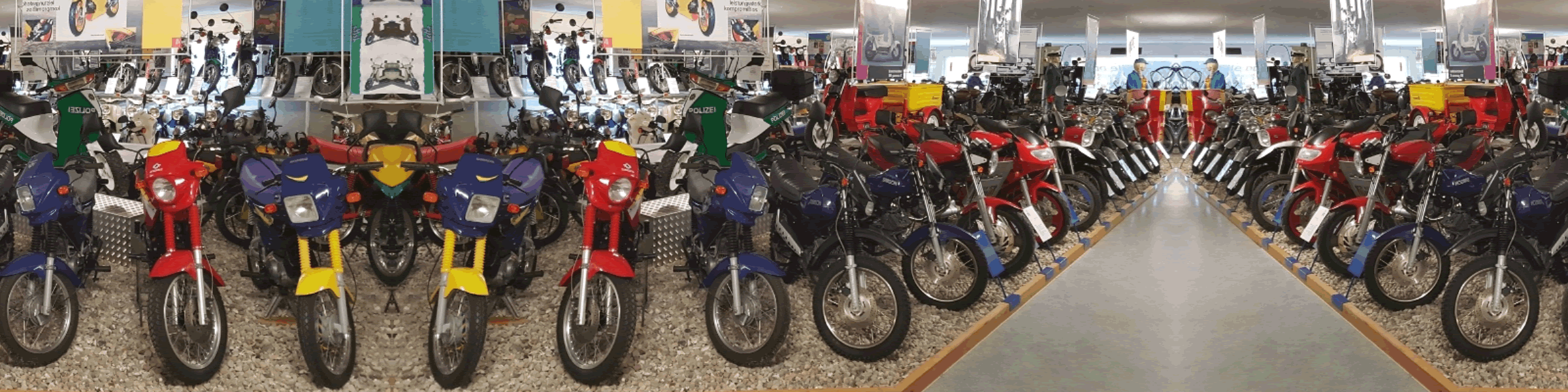 Auf einer Ausstellungsfläche von über 300 m2 präsentieren wir dem Besucher über 100 Zweiräder verschiedenster Arten die in der DDR produziert bzw. an den Endverbraucher verkauft wurden.